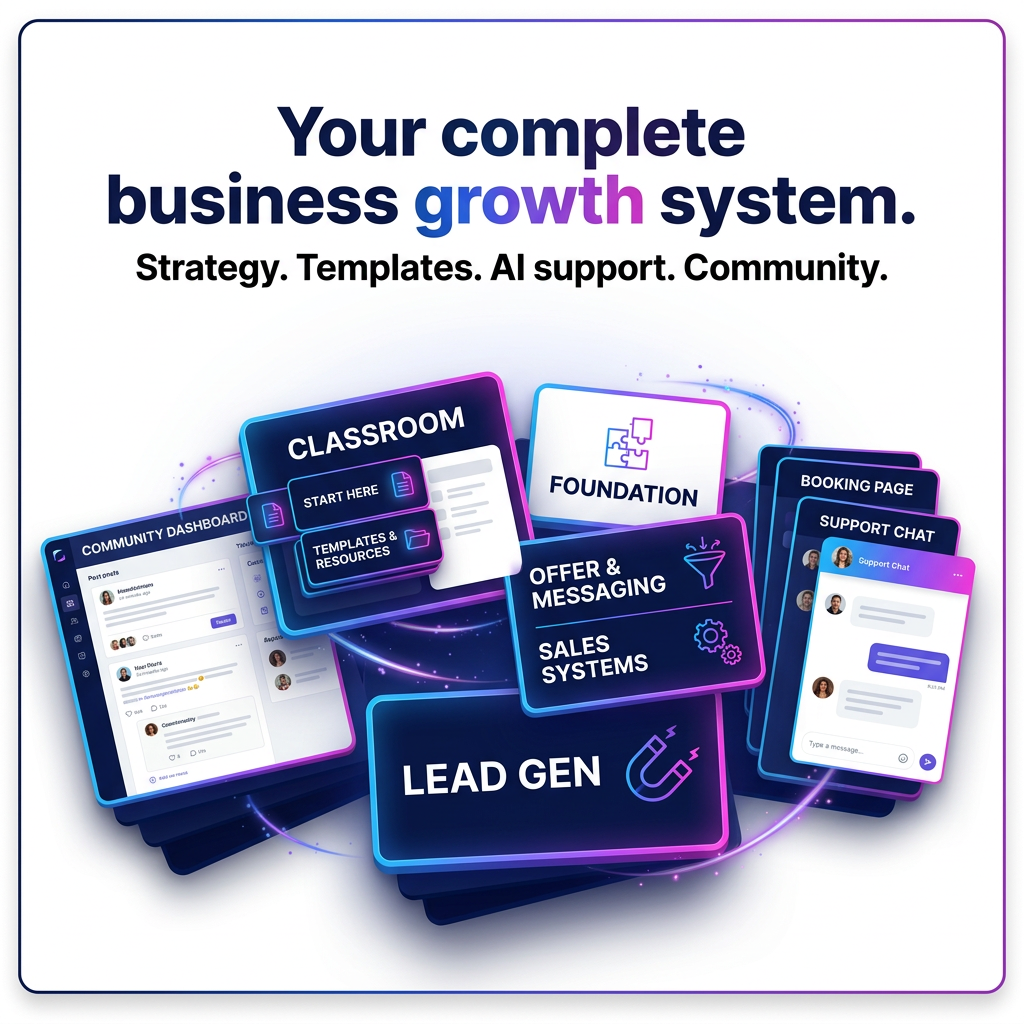 It’s a $19/month membership combining classroom training, live support, AI coaching, community, and resources for founders building or scaling businesses with effective marketing systems.